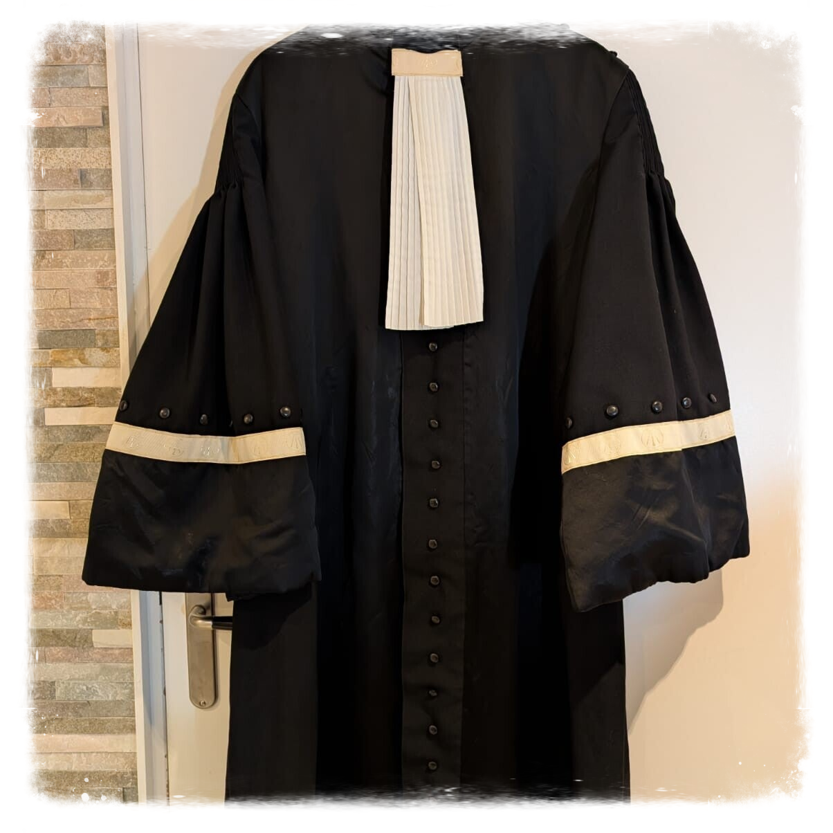 Dit is mijn Robe, Voor als het heel officieel moet zijn, bijvoorbeeld in het gemeentehuis als babs. Naast mijn officiële robe zorg ik er ook altijd voor dat mijn uitstraling perfect aansluit bij de gelegenheid. Een verzorgd uiterlijk en een warme, professionele presentatie maken dat ik niet alleen qua kleding maar ook qua houding vertrouwen uitstraal. Dit helpt om van elke ceremonie een onvergetelijk moment te maken.